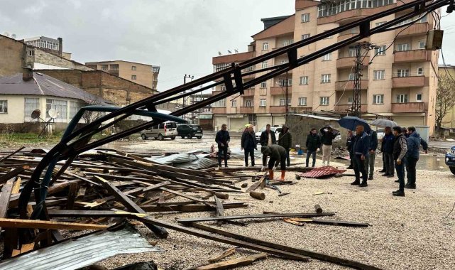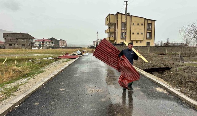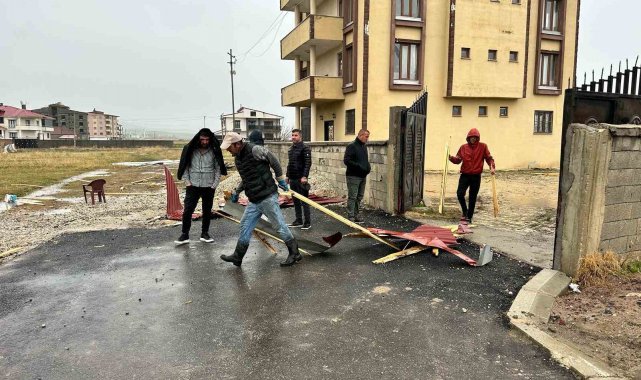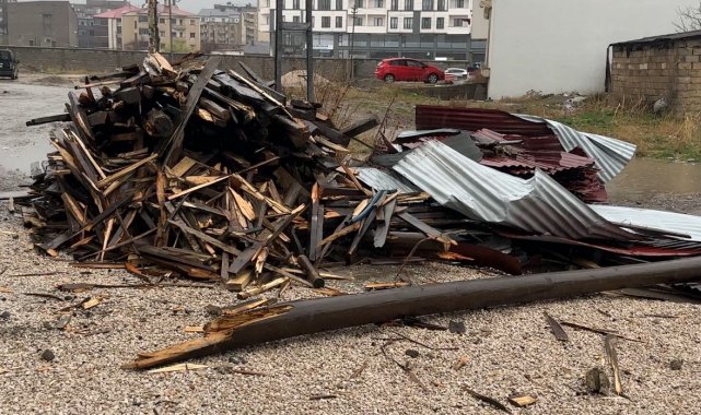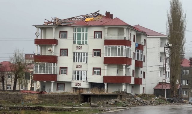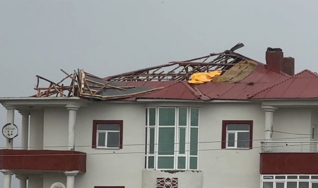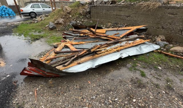 Hakkari'nin Yüksekova ilçesinde dün gece başlayan fırtına nedeniyle çok sayıda evin çatısı uçarken, bir araç ise binadan düşen taş parçası sonucu hasar gördü.