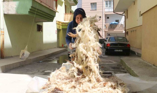Yün yorgan ve yastıklar geleneksel yöntemler ile kışa hazırlanıyor