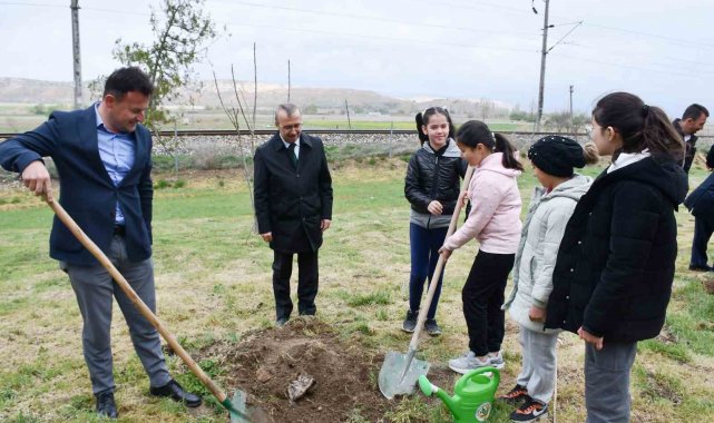 Eskişehir'de 'Yunus Emre Kültür ve Sanat Haftası' çerçevesinde, öğrenciler alıç fidanlarını toprakla buluşturdu.