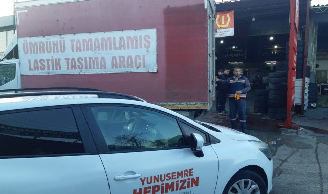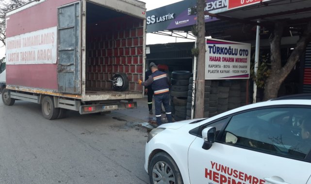 Yunusemre Belediyesi ekipleri, araç lastiği satışı ve onarımı yapan firmalardan topladıkları ömrünü tamamlamış lastikleri geri dönüşüme kazandırıyor.