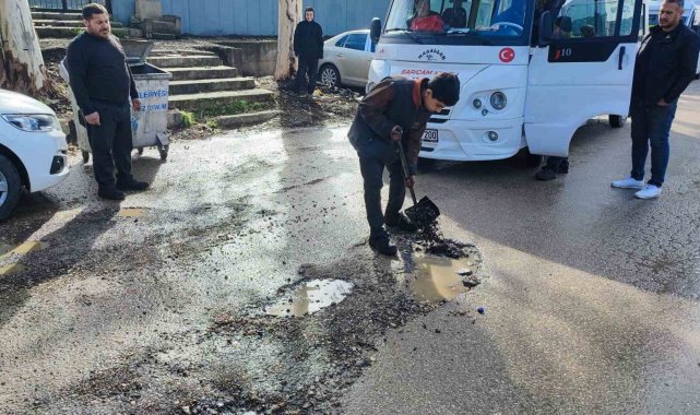Belediyeden sonuç alamayan vatandaşlar, muhtemel kazaların önüne geçmek için kendi imkânlarıyla çukurları doldurdu. Tehlikeli noktaya ise eski bir otomobil lastiği yerleştirilerek sürücüler uyarılmaya çalışıldı.