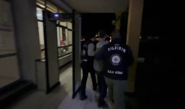 Yıldırım İlçe Emniyet Müdürlüğü Suç Önleme ve Soruşturma Büro Amirliği ekipleri, aranan şahısların yakalanmasına yönelik yürüttükleri çalışmalar tüm hızıyla devam ediyor. Polis ekipleri, radarına aldıkları "Uyuşturucu veya uyarıcı madde ticareti yapma" suçundan hakkında 33 yıl 4 ay 20 gün kesinleşmiş hapis cezası bulunan firari hükümlü Fırat Ş.'yi (42) yakalamak için çalışmalara başladı. Çemberi daraltan ekipler izini sürdükleri şahsın Selimzade Mahallesi, İncirli Caddesi üzerindeki bir adreste saklandığını ve yurt dışına kaçmak için hazırlık yaptığını tespit edince harekete geçti. Baskın yapılan evde yakalanan şüpheli ifadesi alınmak üzere emniyete götürüldü. Buradaki işlemleri tamamlanan Fırat Ş., sevk edildiği adliyede çıkarıldığı mahkemece tutuklanarak cezaevine gönderildi.