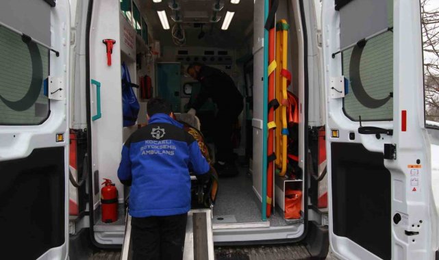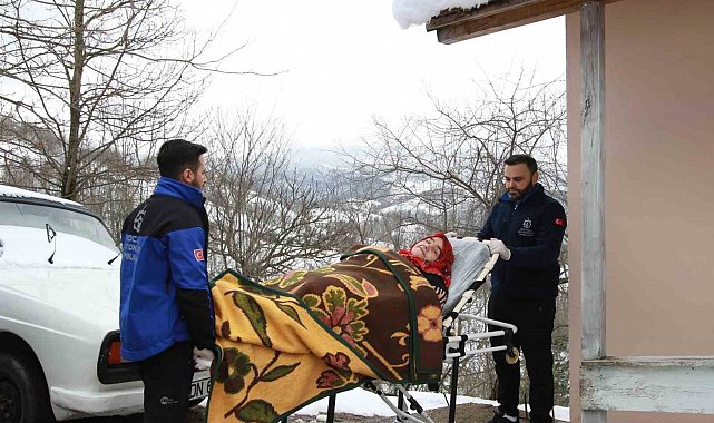 Kocaeli'de hastalığı sebebiyle yürüme kabiliyetini kaybeden kadın her türlü hava şartlarına rağmen belediyenin ambulansıyla hastaneye taşınıyor.