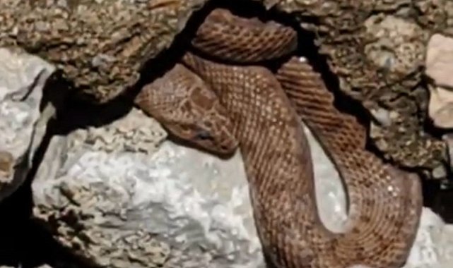 Olay, Tecde Mahallesi'nde, esnaf konteynerlerinin yer aldığı yürüyüş yolunda meydana geldi. Gündüz saatlerinde taş duvarın arasında hareketsiz şekilde duran yılanı gören esnaf, durumu itfaiyeye bildirdi. Vatandaşları tedirgin eden yılanın engerek cinsi olduğu belirtildi.