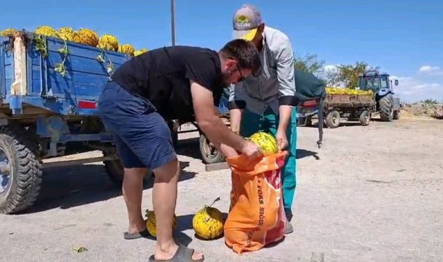 İpsala ilçesine bağlı Sultanköy'da kavun üreticiliği yapan Tunahan Karakaş, kara kavunların kırımına başladıklarını belirterek, "Hâldeyiz, toptan ve perakende satışlarımız var. Kavunun beyi dediğimiz Hasanbey kavunu dayanıklılığıyla bilinir, içi kırmızı, lüks ve lezzetli bir kavundur" dedi.