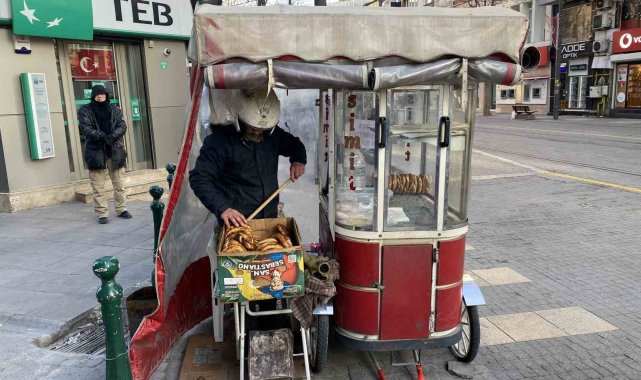 Eskişehir hava sıcaklığının eksi 17 dereceye kadar düştüğü kentte, yüzde 76 engeli bulunan bir vatandaş, sabahın ilk ışıklarıyla birlikte açtığı simit tezgahında geçimini sağlamaya çalışıyor.