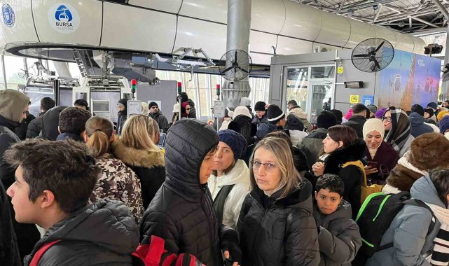 Kış turizminin gözde merkezlerinden Uludağ'a hafta sonu çıkmak isteyenler, sabahın erken saatlerinden itibaren teleferik istasyonlarında yoğunluk oluşturdu. Zirveye teleferikle ulaşmak isteyen vatandaşlar, metrelerce uzayan kuyruklarda bir saati aşkın süre beklemek zorunda kaldı.