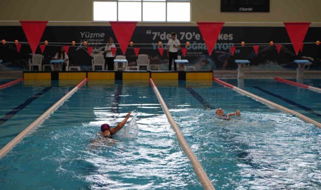 Yüzme bilmeyen kalmasın projesi çerçevesinde kamu personelleri kozlarını havuzda paylaştı