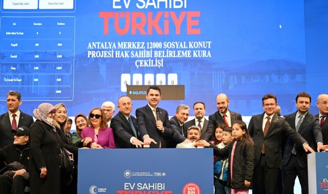 Antalya'da yapılacak 13 bin 213 sosyal konut için kura çekimi Mimar Sinan Kongre Merkezi'nde düzenlendi. Çevre, Şehircilik ve İklim Değişikliği Bakanı Murat Kurum'un da katıldığı tören, çok sayıda hak sahibi adayının yoğun ilgisiyle gerçekleştirildi.