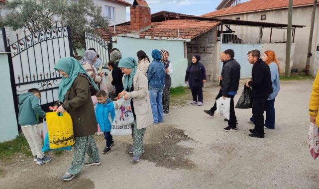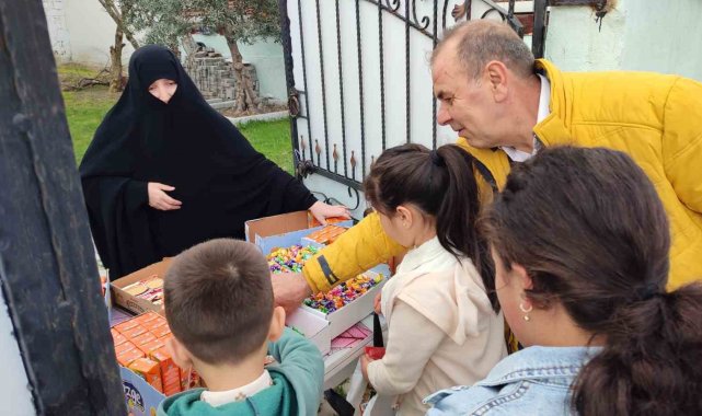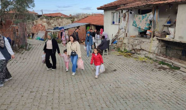 Manisa'nın Gördes ilçesine bağlı 250 nüfuslu Kuşluk Mahallesi'nde bayram namazının ardından mahalle sakinleri, evlerinin önünde hazırladıkları şeker, çikolata, kek gibi ikramlarla misafirlerini ağırlayarak çocukları sevindirdi.