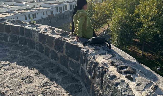 Henüz nedeni bilinmeyen bir olaydan dolayı tarihi surların üstüne çıkıp intihar edeceğini söyleyen kadına müdahale eden zabıta ekipleri, kadını ikna edip surlardan indirdi.