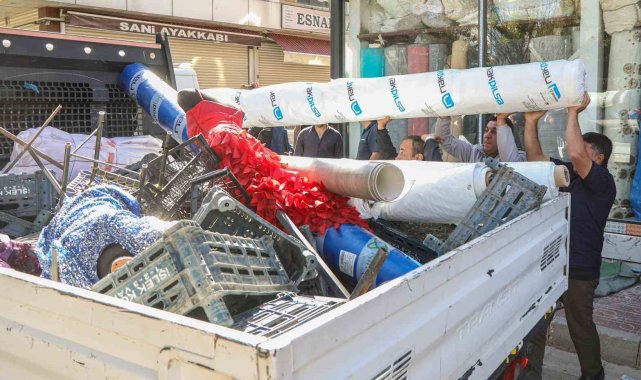 Zabıta ekipleri kaldırımlara bırakılan ürünleri topladı