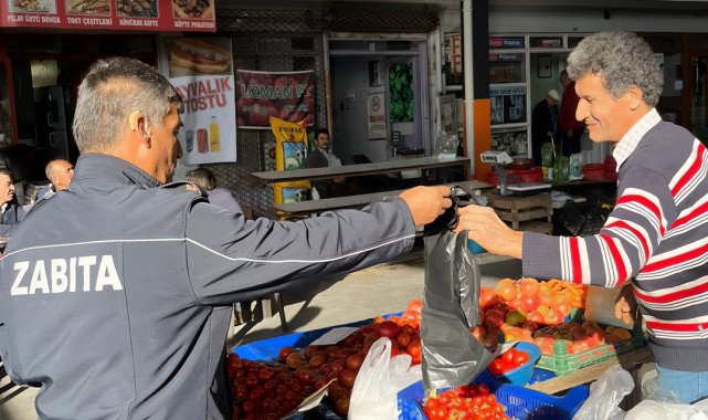 Zabıta ekiplerinden pazarcı esnafına çöp poşeti desteği