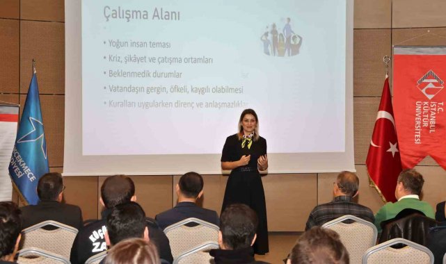 Küçükçekmece Belediyesi, personelin mesleki gelişimine katkı sağlamak amacıyla eğitimler düzenlemeye devam ediyor. Bu çerçevede Belediye Çok Amaçlı Salonu'nda zabıta personeline yönelik iki gün boyunca 'İletişim Eğitimi' gerçekleştirildi. İnsan Kaynakları ve Eğitim Müdürlüğü'nce düzenlenen eğitimde; Doç. Dr. Burcu Türk ve Dr. Öğr. Üyesi Ezgi Özkan stres ve öfke yönetimi, Prof. Dr. Işıl Zeybek etkili iletişim teknikleri ve Dr. Öğr. Üyesi Serkan Seyhan hukuki yetkiler gibi konularda zabıta personeline ayrıntılı bilgi verdi.