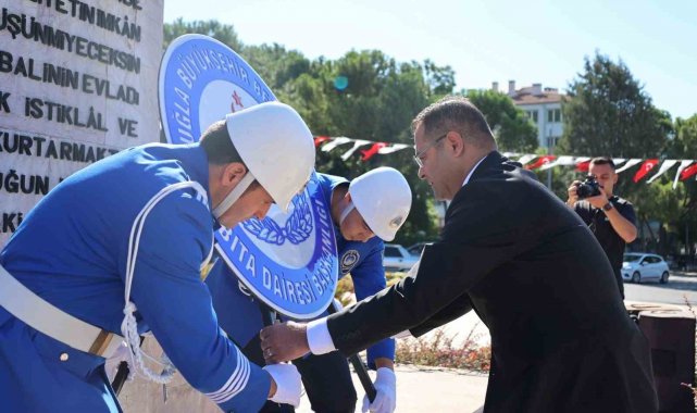 Kutlama etkinlikleri kapsamında ilk olarak Cumhuriyet Meydanı'nda çelenk koyma töreni gerçekleştirildi. Törene Muğla Büyükşehir Belediyesi Genel Sekreteri Tayfun Yılmaz, daire başkanları, zabıta amirleri ve zabıta personeli katıldı. Saygı duruşu ve İstiklal Marşı'nın okunmasının ardından Atatürk Anıtı'na çelenk sunuldu.