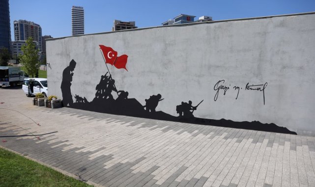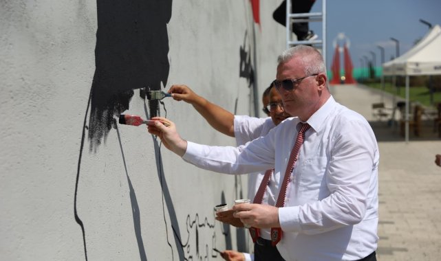 Bursa Büyükşehir Belediyesi tarafından 30 Ağustos Zafer Bayramı etkinlikleri kapsamında eline boya fırçası olan şehit yakınları ve gaziler, zafer ruhunu Mihraplı Şehitler Abidesi giriş yolundaki duvarlara yansıttı.