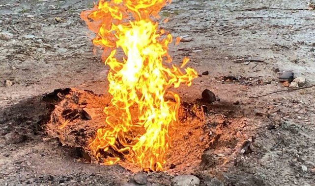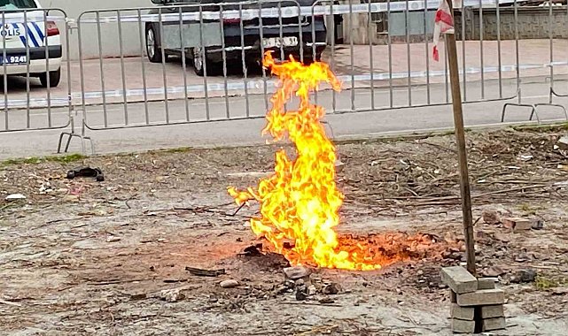 Zemin etüdü sırasında alevlenen metan gazı hala yanıyor
