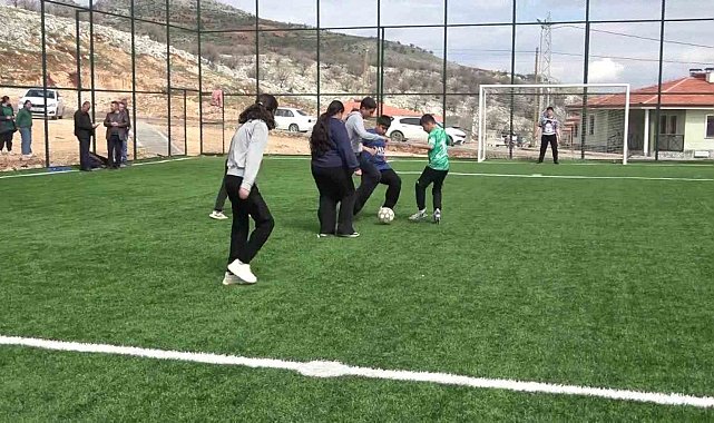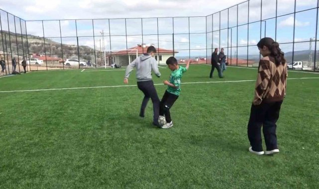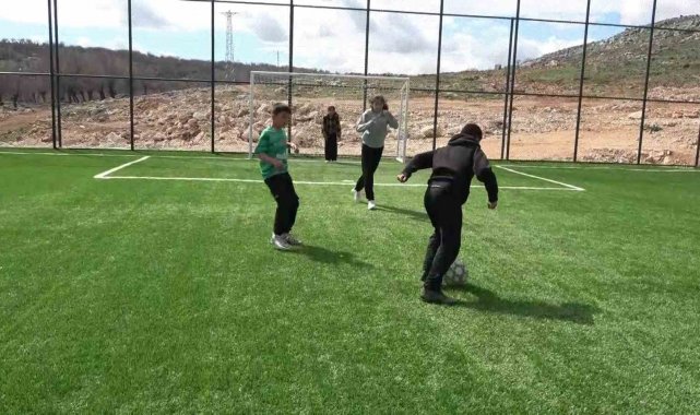 Zey köyünde çocuklar tozdan ve çamurdan kurtulup halı sahaya kavuştu