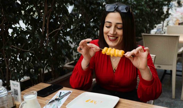 Adanalı tatlıcının geleneksel katmeri çeşitlendirmek için yaptığı Adana usulü 'çöp şiş katmer'in adeta yok sattığı belirtildi.