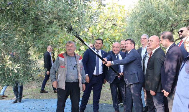 Konuşmaların ardından kooperatife ait zeytinliklerde hasat başladı. Zeytin ağaçlarının altına serilen mavi yaygılar, gökyüzünden bakıldığında halı desenini andıran etkileyici bir görüntü oluşturdu. Ağaçlar tek tek silkelenerek düşen zeytinler kasalara toplandı. Kaymakam Ayhan Terzi ve Marmarabirlik Başkanı Ali Yıldız da zeytin silkeleme makineleriyle hasada katılarak üreticilere destek verdi.