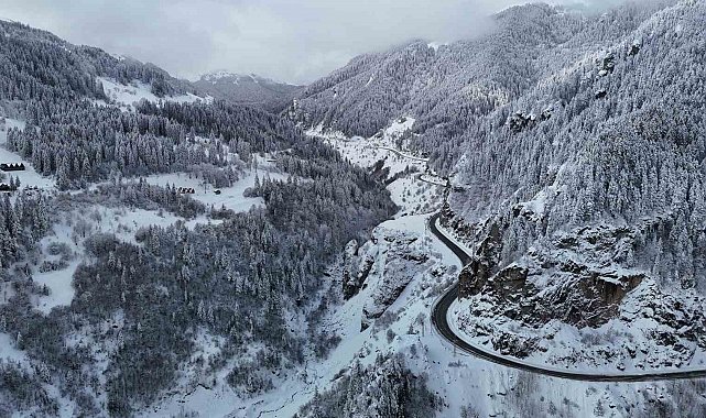 Yeni Zigana Tüneli'nin açılmasıyla birlikte özellikle eşsiz manzaraları seyretmek isteyen vatandaşların kullandığı Zigana Dağı Geçidi kar altında sunduğu kartpostallık görüntülerle doğa tutkunlarını ağırlıyor. Tarihi İpek yolu üzerinde yer alan bin 820 metre rakımdaki eski Zigana Tüneli'nin de bulunduğu zirve ve dağ silsilesi çam ağaçları ile estetik bir görüntü sunuyor. Dron ile havadan çekilen görüntüler doğanın en etkileyici görsellerini bir arada topluyor.