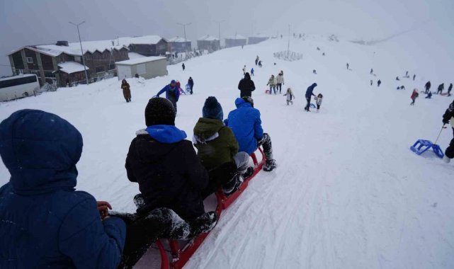 Hem Gümüşhane'ye hem de Trabzon'a 45 dakika mesafede yer alan ve Arap turistlerin de olduğu alanda kimisi kayak kimisi kızak yaparken bazı vatandaşlar da alandaki kar motorlarıyla tur atıyor.