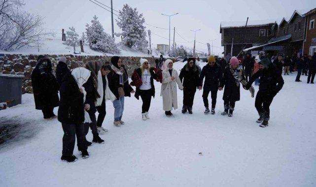 Yanan çoban ateşinin etrafında ısınan, zaman zaman çalan müzik eşliğinde horon oynayan ziyaretçiler eğlence dolu bir gün yaşadı.