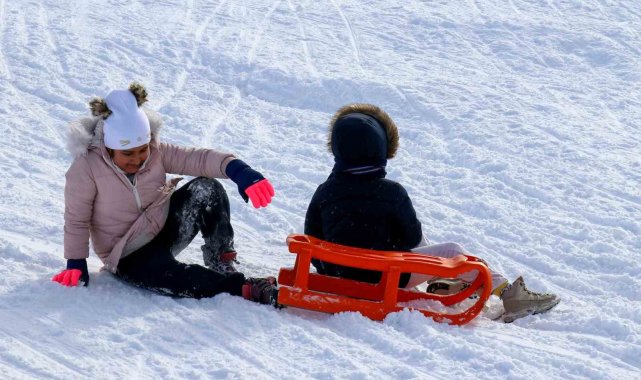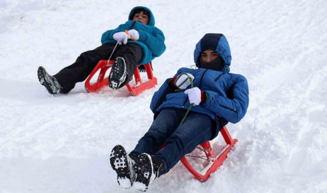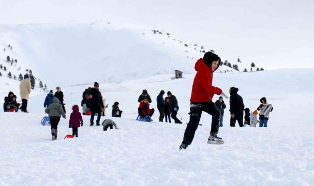 Tatilin başlaması ve yoğun kar yağışının ardından kayak pistleri, kızağa binen çocuklar ve doğanın keyfini çıkaran ziyaretçilerle dolup taştı.