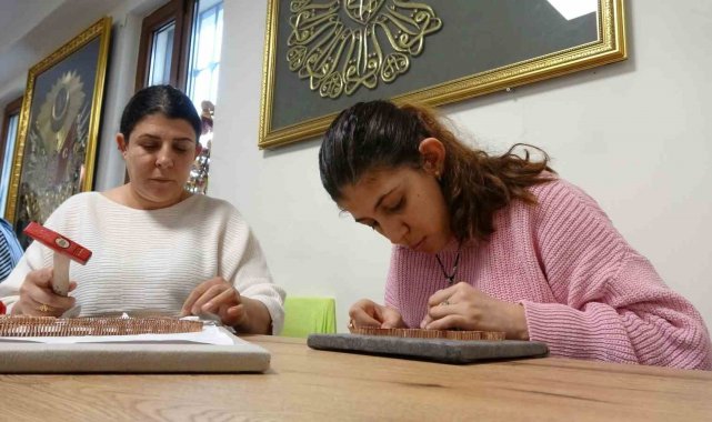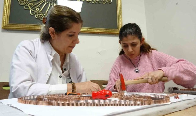 Sürekli ilaç kullanan ve evden de kolay kolay çıkmayan Beyza Nur Küçüktürkmen, bir yıl önce mahallelerindeki Şahinbey Millet Camii ve Külliyesi içinde yer alan filografi kursundaki kadınların yaptıkları tabloları tek tek inceledi.