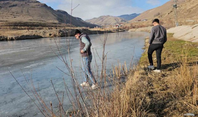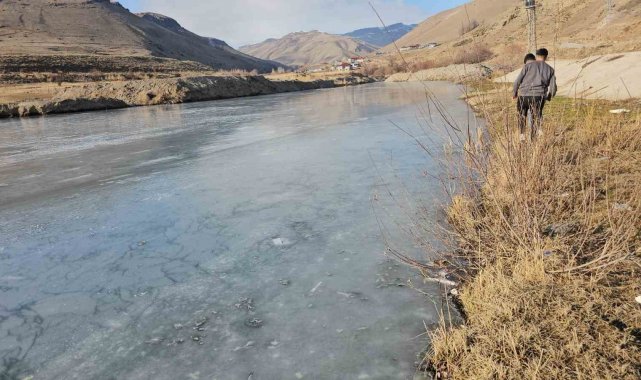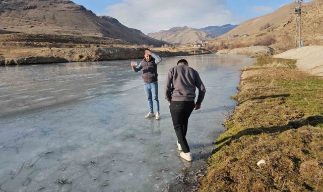 Van'ın Erciş ilçesinde etkili olan dondurucu soğuklar nedeniyle Zilan Çayı dondu.
