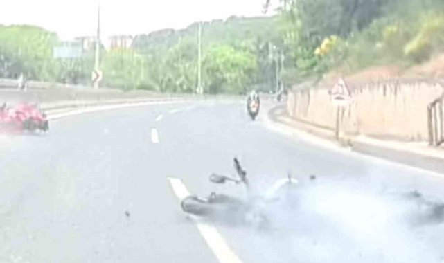 Kocaeli D130 Karayolu'nda meydana gelen zincirleme trafik kazasında 3 kişi yaralandı. Kaza anı motosiklet sürücüsünün kask kamerasına yansıdı.