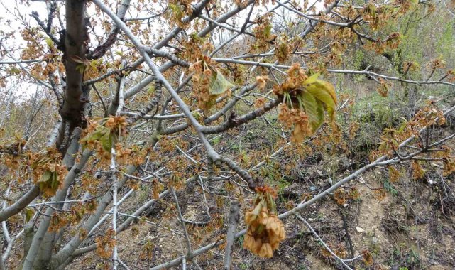 Malatya'da etkili olan zirai don, kayısının yanı sıra kentin diğer önemli tescilli ürünü dalbastı kirazını da vurdu. Geçimini meyvecilikle sağlayan üreticiler, ürün kaybının yanında ağaçların da zarar görmesinden endişe ediyor.