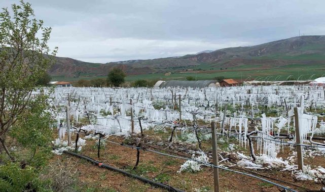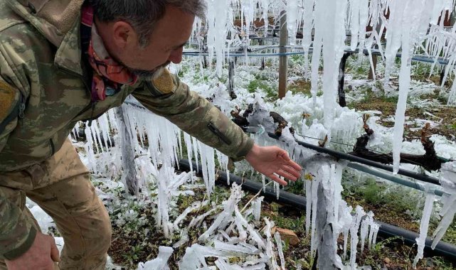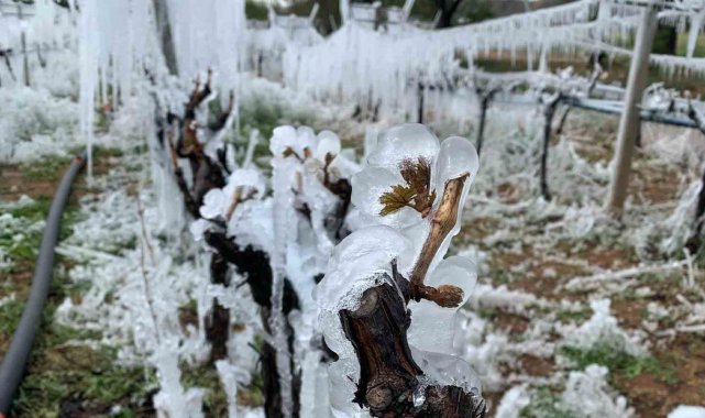 Erdem, "Dereceler -8'i gördü. Yağmurlama yaparak bağları buz haline getirip soğuktan kurtarmaya çalıştık. İnşallah yaptığımız teknik işe yarar, bağlarımız zarar görmeden bu süreci atlatırız" dedi.