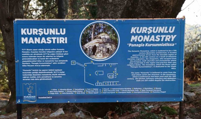 Geçmişinde birçok medeniyete ev sahipliği yapan Aydın, her geçen gün cazibesini artırmaya devam ederken, doğal güzellikleri ve tarihsel yapılarıyla da yerli ve yabancı turistlerin rotalarına giriyor. Tarihin gizemli yönlerini keşfederek değerlendirmek isteyen vatandaşlar ise yönlerini binlerce yıllık geçmişi ile Ege'nin incilerinden olan Aydın'a çeviriyor. Bu kapsamda Kuşadası'na bağlı Davutlar Mahallesi'nde bulunan ve antik dönemdeki adıyla Mykale'nin (Samson Dağları) 900 metre yüksekliğine inşa edilen Kurşunlu Manastırı da doğa ve tarih severlerin yürüyüş rotalarında yer almaya başladı. Uzun yıllar ilgi bekleyen ve geçtiğimiz 2021 yılında temizliği yapılarak restorasyon çalışmalarına başlanan manastır, adeta ormanın içine gizlenmiş vaziyetiyle ziyaretçilerine tarih ve doğanın güzelliklerini bir arada sunuyor. Davutlar Mahallesi'nden 12 kilometrelik bir tırmanışla ulaşılabilen manastır, her geçen gün dikkatleri üzerine çekerken, Kuşadası'nda inanç turizminin yeni adresi olmaya aday gösteriliyor.