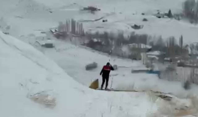 Hakkari'nin Yüksekova İlçe Tarım ve Orman Müdürlüğü ekipleri, yiyecek bulmakta zorlanan dağ keçileri için zorlu yollardan geçerek yem bıraktı.