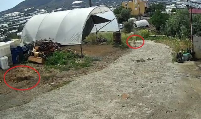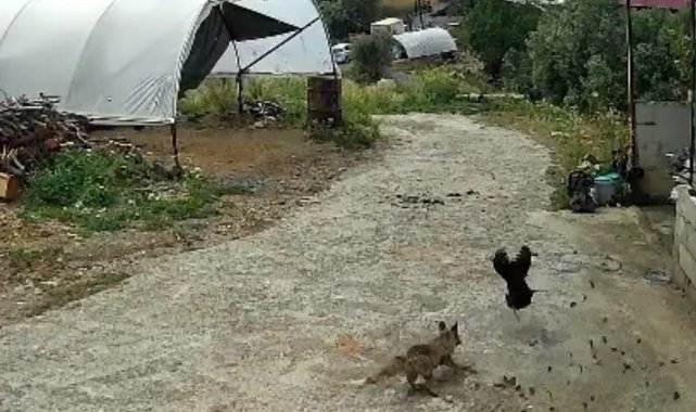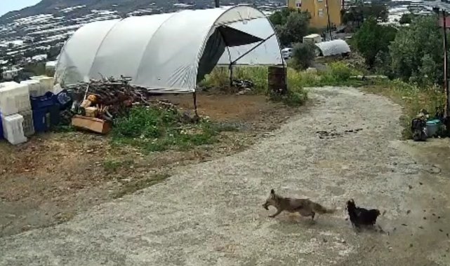 Antalya'nın Gazipaşa ilçesi Çobanlar Mahallesi'nde yaşanan doğa olayı, hem şaşırttı hem tebessüm ettirdi. Aç kalan bir tilki, gündüz vakti mahalleye inerek bir tavuğu yakaladı. Ancak köyde bulunan bir köpeğin kahramanlığı sayesinde tavuk telef olmaktan kurtuldu. O anlar bir evin güvenlik kamerasına saniye saniye yansıdı.