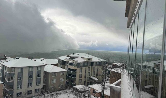 Alaplı'ya deniz üzerinden gelen yoğun kar fırtınasının görüntüsü, bir vatandaş tarafından cep telefonu kamerasıyla kaydedilirken, kısa sürede sosyal medyada yayılarak büyük ilgi gördü.