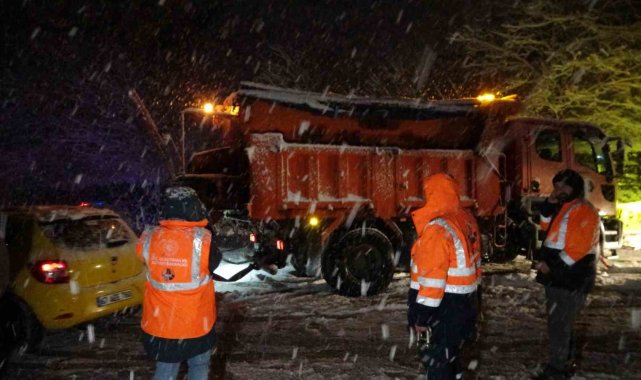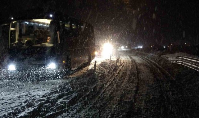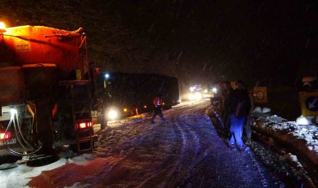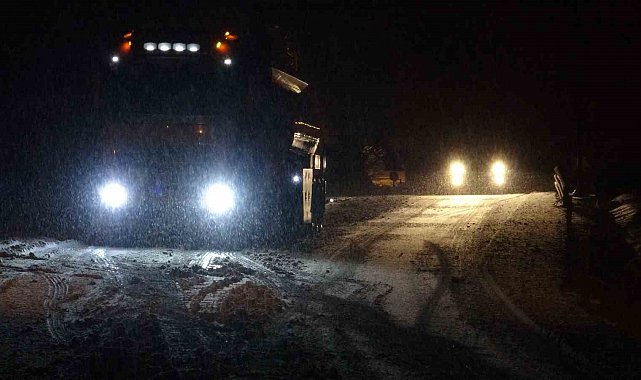 Zonguldak'ta gece saatlerinde etkili olan kar yağışı, Ereğli kara yolunda sürücülere zor anlar yaşattı. Kar küreme araçları gece boyunca mesaisini sürdürürken bazı güzergahlarda konvoylar oluştu.