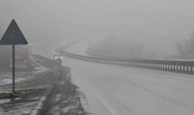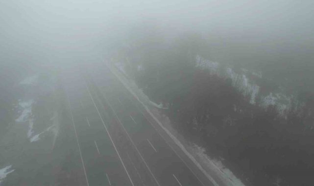 Zonguldak-Ereğli yolunda sis havadan görüntülendi