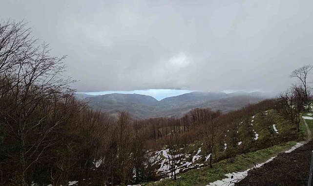 Zonguldak'ta dolu yağışıyla birlikte etkili olan sis havadan görüntülendi.