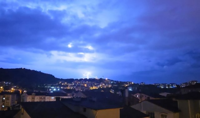 Karadeniz Ereğli'de akşam saatlerinde hava sıcaklığının aniden düşmesinin ardından gökyüzünde oluşan şimşekler geceyi adeta gündüze çevirdi. İlçenin farklı noktalarından görülen şimşekler, vatandaşların cep telefonlarıyla kaydettiği görüntülerle de dikkat çekti.