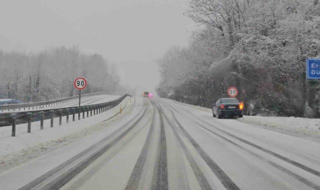 Zonguldak'ın yüksek kesimlerinde sabah saatlerinden itibaren devam eden kar yağışı etkisini sürdürüyor. Ereğli istikametinde ise karayolları ekipleri karla mücadele çalışmalarını aralıksız sürdürüyor.
