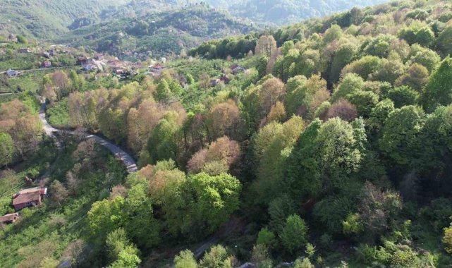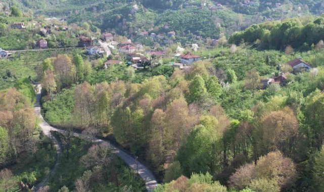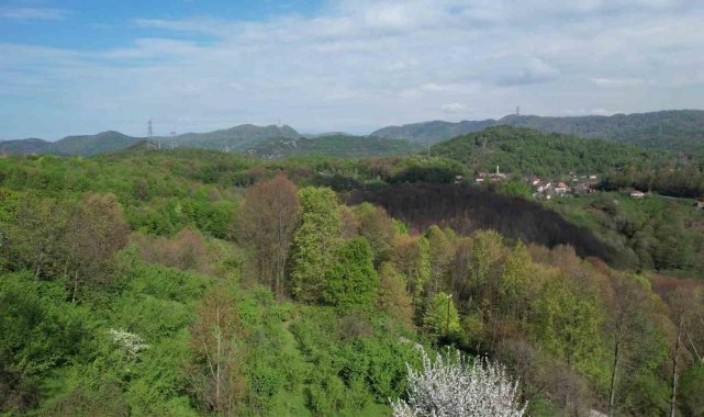 Zonguldak ormanlarında baharın renk cümbüşü havadan görüntülendi