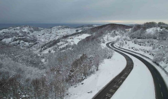Zonguldak'ta etkili olan yoğun kar yağışı yerini sakin bir havaya bıraktı. Kenti Ereğli ilçesine bağlayan kara yolunda Karayolları ekiplerinin yürüttüğü yoğun kar küreme ve tuzlama çalışmalarıyla yol tamamen ulaşıma açıldı. Asfalt zeminin karla kaplı ormanların arasından süzüldüğü güzergah, dron ile görüntülendi. Hava sıcaklığının 1 derece olarak ölçüldüğü bölgede, sürücüler, iki tarafı karla kaplı ağaçlarla çevrili yolda ilerlerken oluşan manzara eşliğinde yolculuklarını sürdürdü. Ulaşımda herhangi bir aksamanın yaşanmadığı yolda, kar manzarası havadan estetik görüntüler oluşturdu.