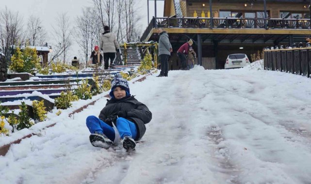 Zonguldak'ta çocuklar karda kayarak eğlendi