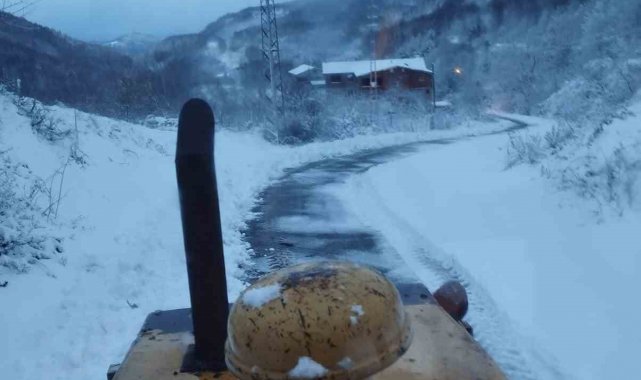 Uzun araçlar ve yaz lastiği olanların geçişine izin verilmezken İl Özel İdaresi ekipleri köylerde de karla mücadele çalışmalarını sürdürdü.