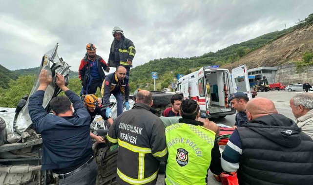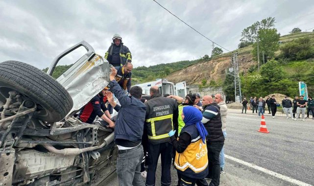 Zonguldak'ta iki aracın çarpıştığı kazada araçlardan biri devrildi: 2 yaralı