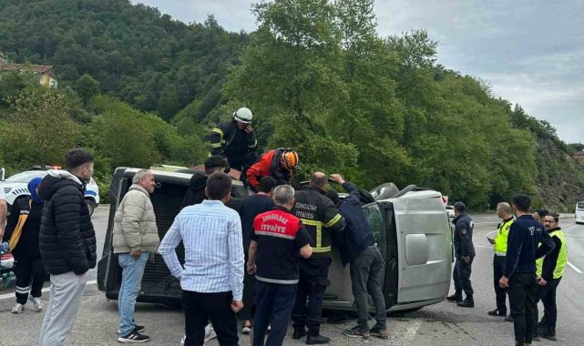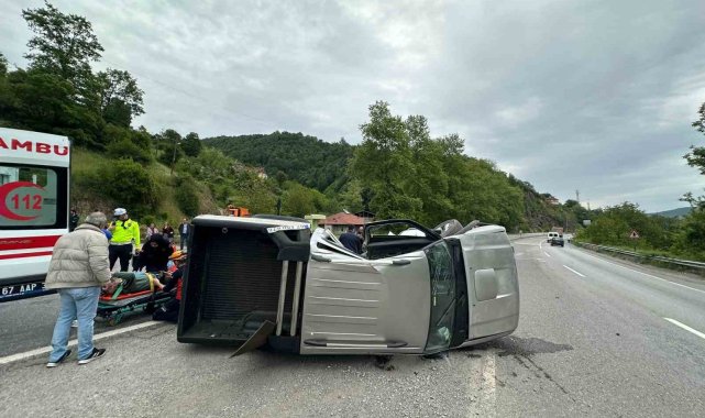 Zonguldak'ın Karaman beldesinde iki aracın çarpıştığı trafik kazasında araçlardan biri devrildi. Kazada her iki sürücü de hafif şekilde yaralandı.