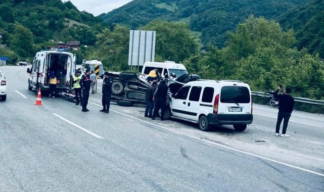 Kaza, saat 12.00 sıralarında Karaman beldesinde meydana geldi. B.K. idaresindeki 67 ADH 876 plakalı araç ile Ş.K. yönetimindeki 67 ABG 295 plakalı araç henüz belirlenemeyen bir nedenle çarpıştı. Çarpışmanın etkisiyle 67 ABG 295 plakalı araç devrilerek yan yattı. Kazayı gören vatandaşların ihbarı üzerine olay yerine sağlık ve polis ekipleri sevk edildi. Kazada hafif şekilde yaralanan her iki aracın sürücüsü tedbir amaçlı hastaneye kaldırıldı. Yaralıların sağlık durumlarının iyi olduğu öğrenildi.