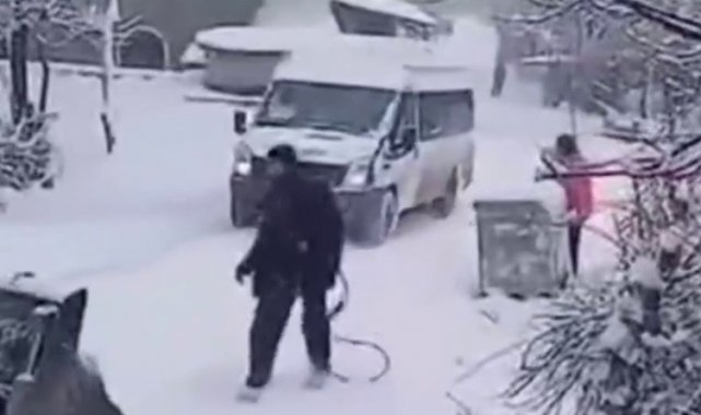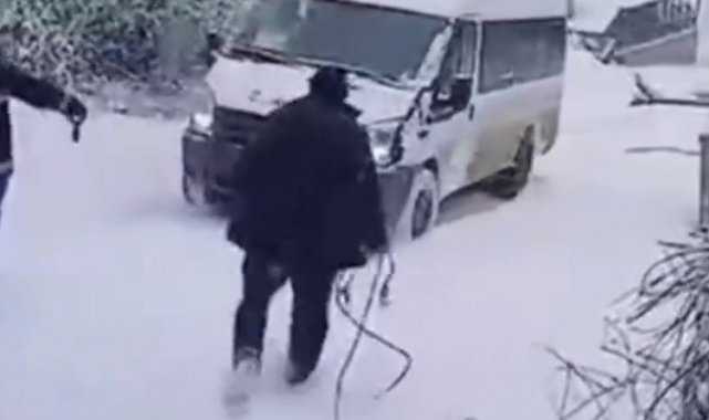 Kaza, Gökçebey ilçesine bağlı Dağdeğirmenciler köyünde yaşandı. Kar çalışması yapan iş makinesi, yolda kalıp ihbarla ekip bekleyen öğrenci servisine çarptı. Çarpmanın etkisiyle kontrolden çıkıp metrelerce kayan servis aracı duvara çarparak durabildi. O anlar amatör kamera tarafından görüntülendi. Faciadan dönülen kazada öğrencilerin yara almaması ise sevindirdi.